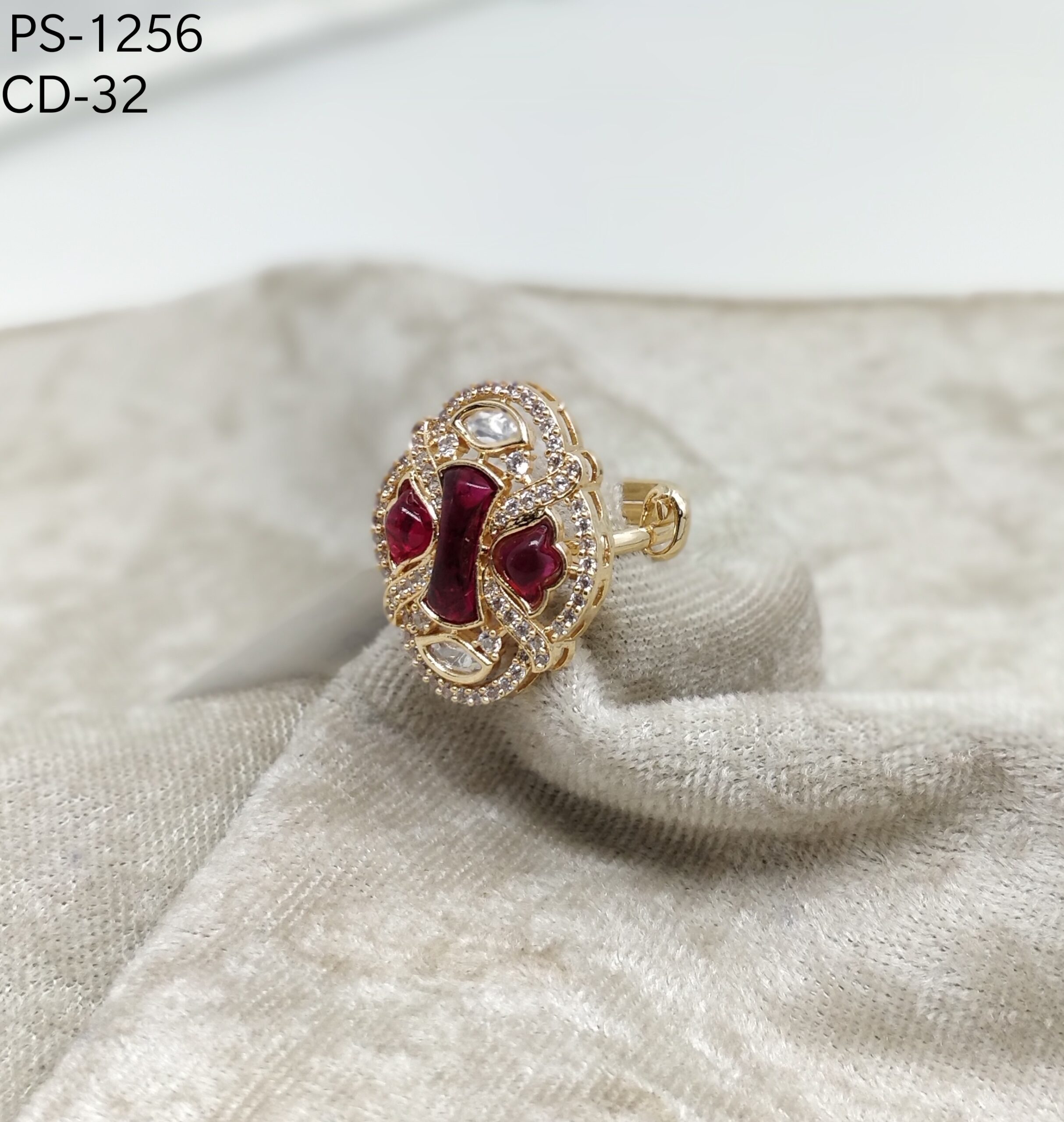 Add timeless charm to your jewelry collection with this exquisite adjustable ring. Designed with a striking ruby-red stone centerpiece, it is beautifully accented by sparkling CZ crystals in an intricate filigree pattern. The adjustable band ensures a comfortable fit, while its lightweight construction makes it perfect for all-day wear.