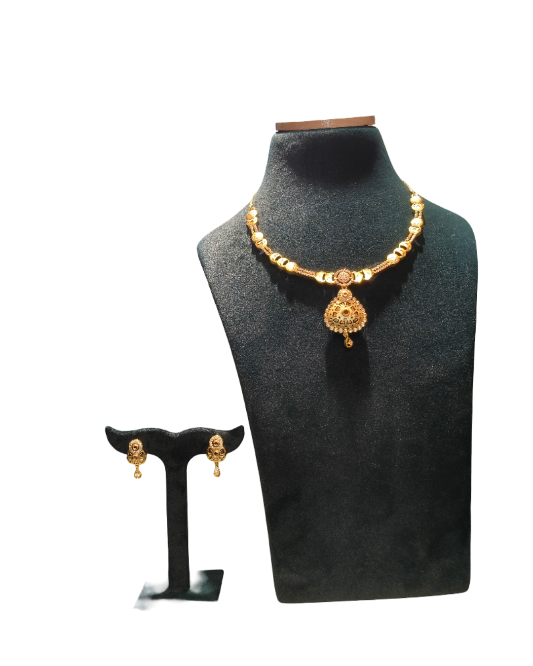 Traditional Plated Necklace and Earring Set with Artistic Pendant
