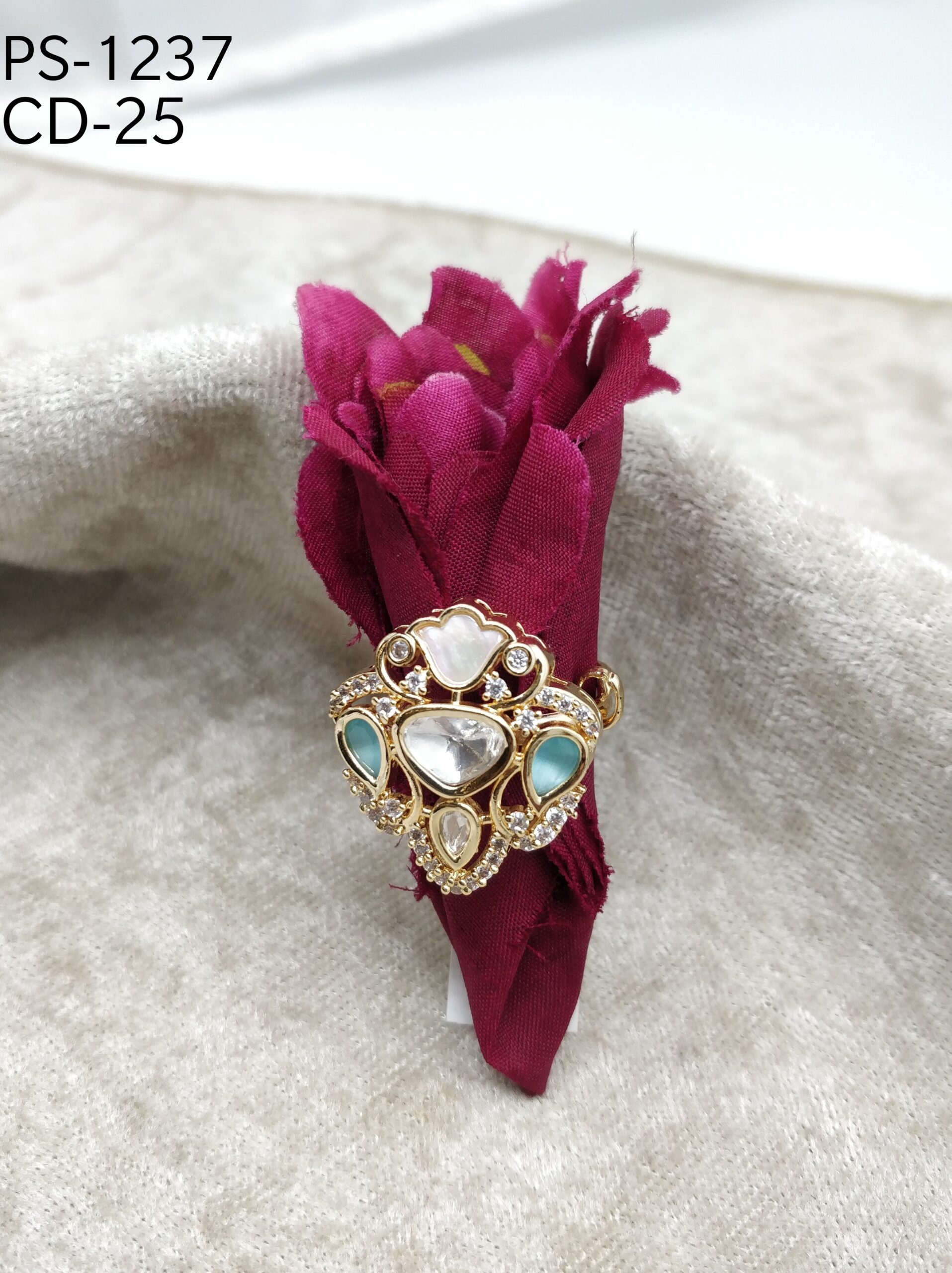 • Accent Stones: Adorned with turquoise-colored side stones and sparkling cubic zirconia (CZ) accents.
